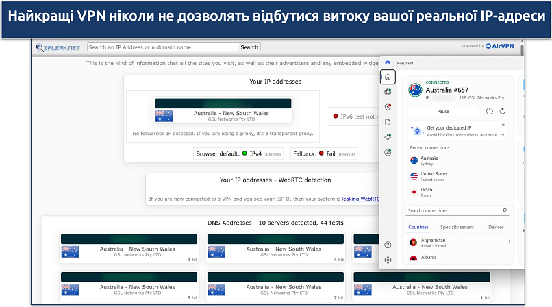 Ми рекомендуємо скористатися інструментом для виявлення витоків даних, щоб переконатись в успішній зміні IP-адреси. Все, що вам потрібно зробити, то це відвідати один з багатьох доступних сайтів визначення IP-адрес. Вони автоматично визначать, яка саме IP-адреса наразі використовується вашим пристроєм. Якщо VPN спрацювала правильно, ваше реальне місцезнаходження буде приховано, а відвідувані вами сайти будуть бачити лише IP-адресу VPN-серверу. Якщо ж відбувається виток вашої IP-адреси, то сервіси потокового мультимедіа, такі як BBC iPlayer та ITVX, будуть знати, що ви використовуєте IP-адресу не з Великої Британії, і заблокують доступ, навіть якщо ви використовуєте VPN лише з міркувань безпеки.