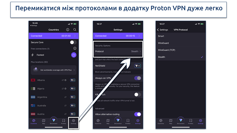 Її безкоштовний додаток для iOS також пропонує кілька інструментів забезпечення безпеки та захисту конфіденційності, які убезпечать ваші персональні дані. Він має протокол Stealth (також дуже рідко зустрічається в безкоштовних VPN), який дозволяє вам використовувати VPN в цензурованих мережах і не бути виявленими. Крім того, додаток пропонує протоколи WireGuard, OpenVPN та IKEv2. Окрім протоколів захисту, додаток використовує 256-бітне шифрування AES, функцію автоматичного аварійного відключення та інструмент захисту від витоків даних через IP/DNS. А оскільки компанія зареєстрована в Швейцарії, де діють дуже суворі закони щодо захисту конфіденційності, ви будете впевнені, що ваші дані надійно захищені.